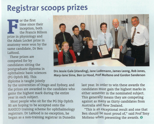 We have a lot of talent in our community, and Ben LaHood is certainly testament to this. Please see the accompanying picture to read the article on Ben LaHood in the Magazine of Ophthalmic Optics. It covers the fact that Ben was the first person ever to be awarded …