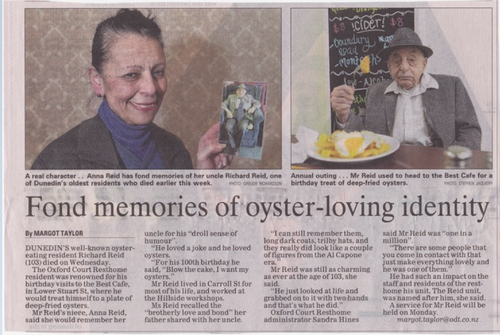 It is with great sadness we inform you that Richard Reid has passed away peacefully at 103 years of age. What an incredible age. What an incredible life. Here is an article printed in the ODT about Richard and his love of the Best Cafe. We are sending love …